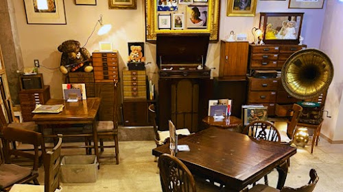 Quirky basement café serving drip coffee and artisanal cheesecake alongside a unique vintage china collection.