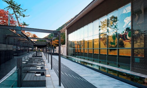 Harmonizes nature and art, showcasing sculptures with a backdrop of mountains. Highlights include the Picasso Exhibition Hall and an outdoor foot bath for relaxation.