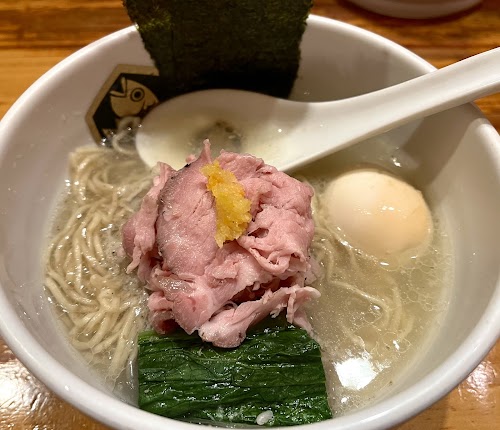 Unique noodle soups featuring signature fish broth in a casual space with an open kitchen design.