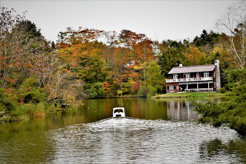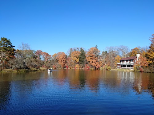 Tranquil lake flanked by vibrant trees, renowned for colorful fall foliage and unique duck sightings.