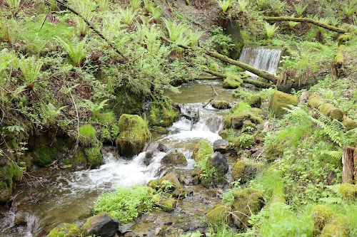 Stunning cascades flow through lush greenery, featuring enchanting rock formations and serene trails.