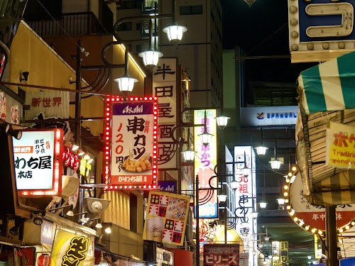 Discover vibrant local culture and unique street food in Osaka's bustling Shinsekai district.