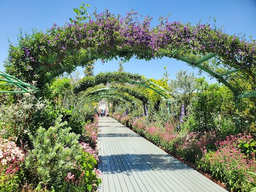 Explore a unique botanical garden with stunning irises and exotic birds, plus serene café seating.