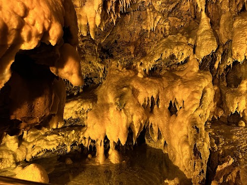 Explore a vast limestone cavern featuring a 30-m underground waterfall and stunning bulbous stalactites.