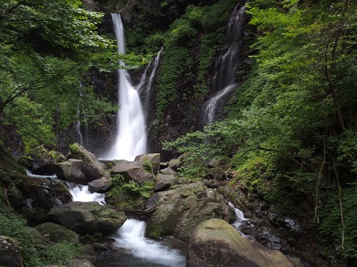 Stunning twin waterfalls in Nikko, showcasing vibrant seasonal colors and serene nature trails.