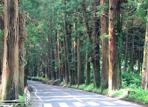 Explore a stunning tree-lined path offering ancient cedar trees and serene natural beauty in Nikko.